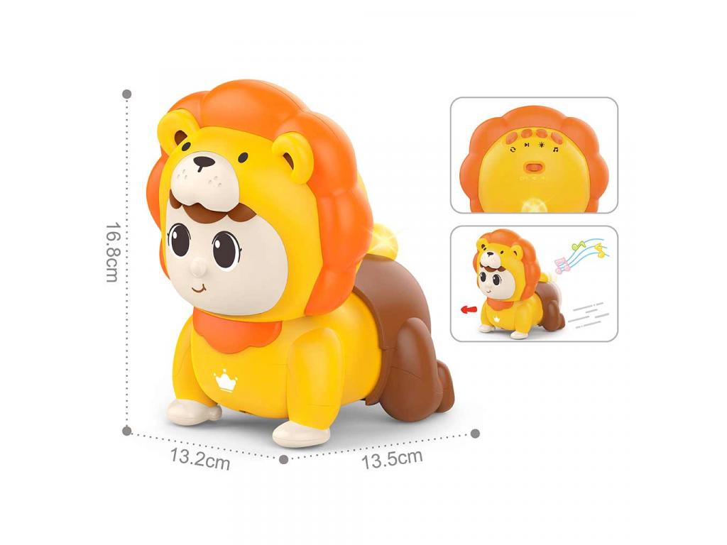 Fedezd fel a Kúszó-Mászó Babát oroszlán jelmezében, ami tökéletes társ a kisgyermekes otthonokba! Ez a 13x17 cm-es, aranyos játékbaba oroszlán jelmezbe bújva nem csak imádni való látványt nyújt, hanem segít a gyermekeid finommotorikus képességeinek és koordinációjának fejlesztésében is. A baba búgó hangot ad ki, miközben kúszik, így a gyerkőc nem tud majd betelni vele! Könnyen tisztítható anyagból készült, így a játék akkor is higiénikus maradhat, ha éppen a földön mászkálás közben találkozik egy-két morzsával.