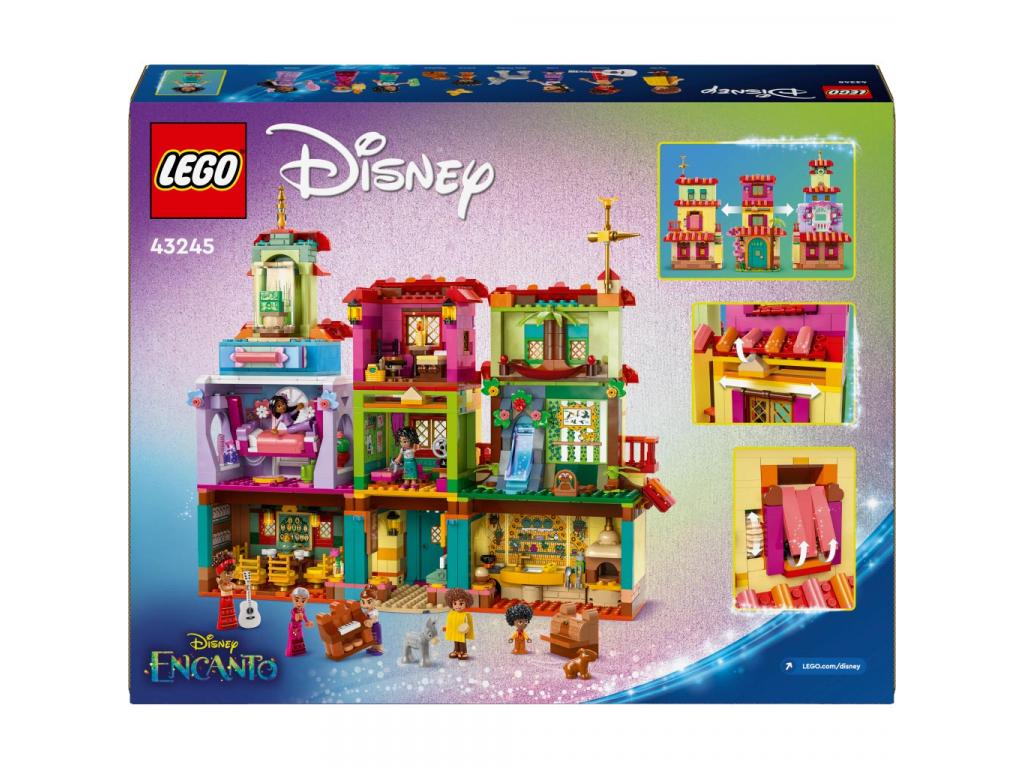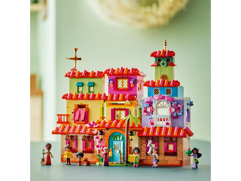 A megépíthető szett vidám ajándékötlet, és tartalmazza Mirabel, Abuela, Isabela, Dolores, Luisa és Camilo LEGO | Disney minibaba-figuráit, egy Antonio LEGO | Disney mikrofigurát és 2 LEGO | Disney állatfigurát. A gyerekek és a felnőttek egyaránt örömüket lelhetik a különféle részletekben, sőt, a ház kombinálható más LEGO építőszettekkel és a LEGO | Disney sorozat többi építőjátékával (külön kaphatók), hogy még több legyen a szórakozás.