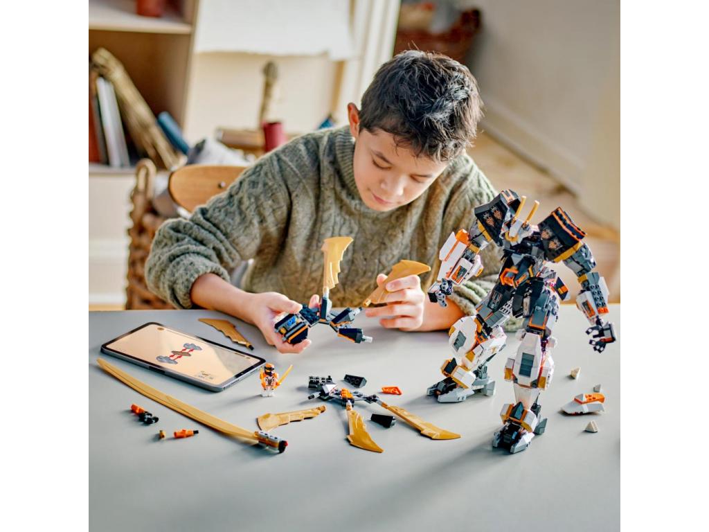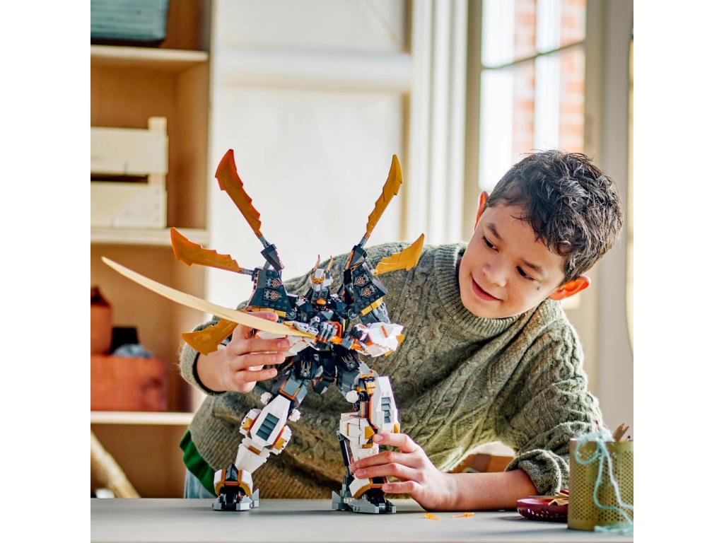 A Cole titánsárkány-robotja (71821) kalandjátékkal a 12+ éves fiúk és lányok akciójeleneteket játszhatnak el a NINJAGOŽ Sárkányok birodalma című sorozat 2. évadából. Ez az eddigi legnagyobb NINJAGO titánrobot, amelynek beállítható a lába, a feje, a teste, a forgatási pontjai és a illesztései, hogy a gyerekek csatapózokba állíthassák, valamint beállítható szárnyakkal és egy hatalmas karddal rendelkezik.
