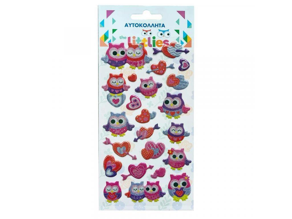 The Littlies: Csillogó baglyos 3D pufi matrica szett 10x22cm-es íven