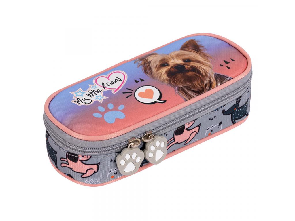 Ismerd meg a St.Right My Little Friends Grey York ovális tolltartót, ami ideális választás minden kutya-rajongó gyerkőc számára! Ez a bájos tolltartó nemcsak praktikus, de rendkívül aranyos is, köszönhetően a vidám kutyusos mintájának és a yorkshire terrier képének a tetején.