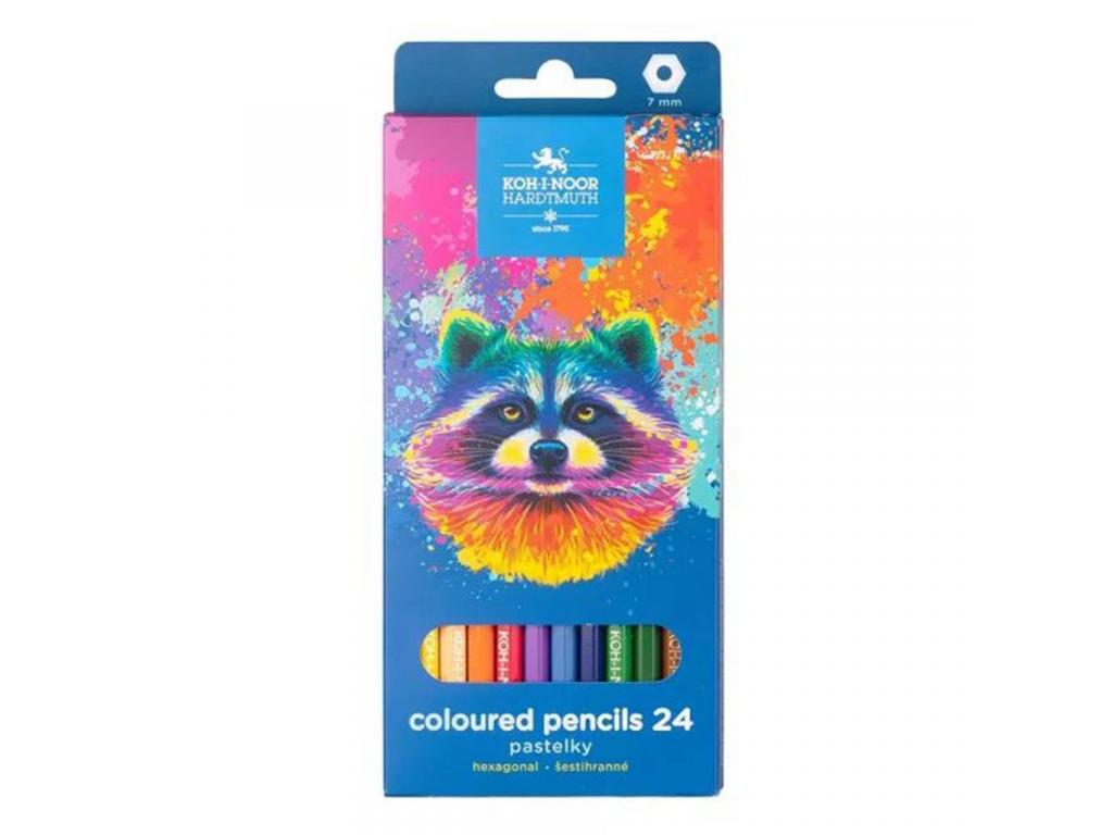 Az ICO: Koh-I-Noor 3554 Hatszögletu színes ceruza mosómedvés dobozban 24 darabos leírása:
