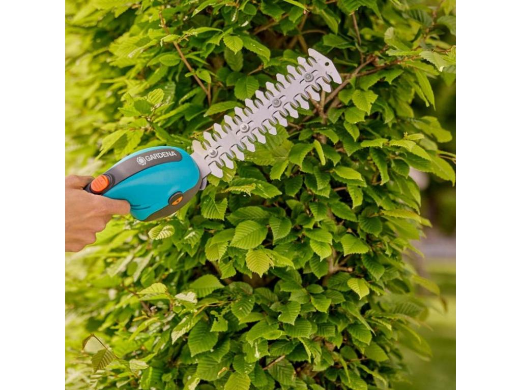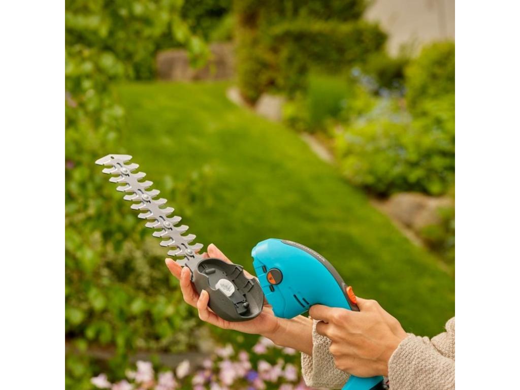 A Gardena PowerCut 20/18 V P4A 14750-55 akkumulátoros fű- és sövénynyíró szett ideális a gyepszélek tisztítására, sövények és bokrok nyírására, kisebb ágak és fűcsomók levágására. Egy nagy teljesítményű és könnyen karbantartható 18 V-os akkumulátoros szerszám része, amellyel egyszerűen és hatékonyan dolgozhat. Az olló kialakítása könnyű, ergonomikus anyagból készült, csúszásmentes fogantyúval és jól kiegyensúlyozott alkatrészekkel. A kiváló minőségű pengék precíziós élezéssel és tapadásmentes felülettel rendelkeznek; a fűkasza 8 cm-ig, a sövényvágó 20 cm-ig vág; cseréjük gyors és szerszámmentes.