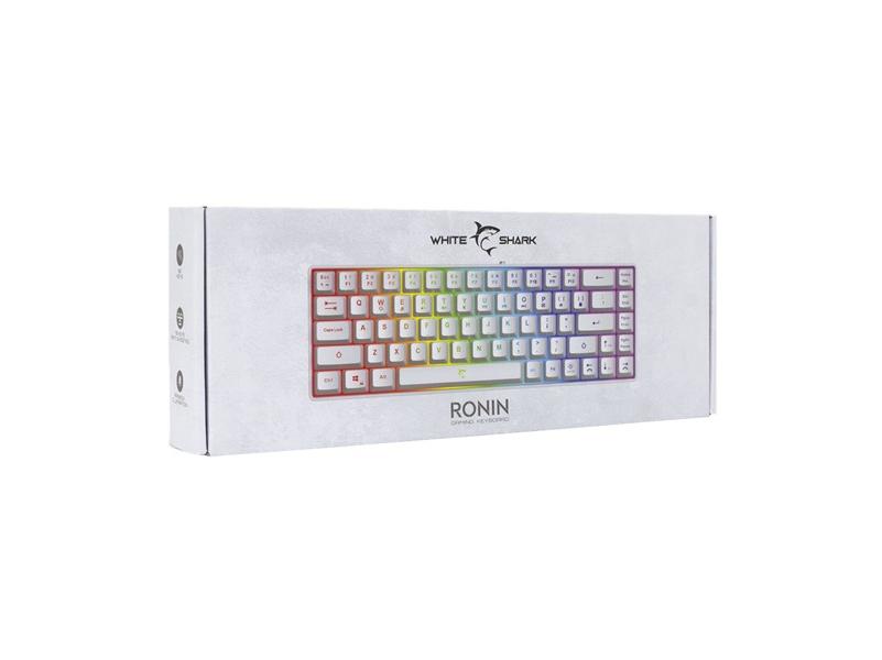 White Shark RONIN, WS GK-2201W-US fehér gamer membrán billentyűzet (angol) 68 gomb, Rainbow háttérvilágítás. 85%-os méret.