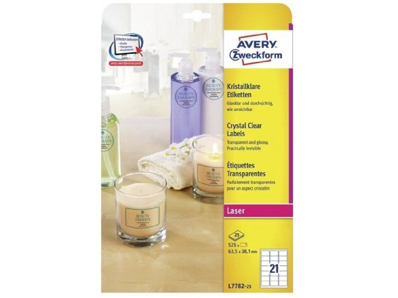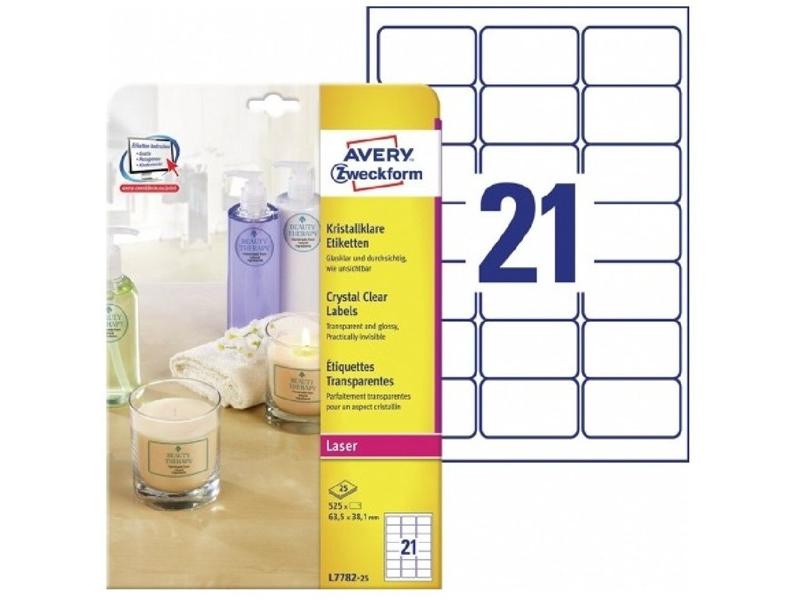 Az Avery L7782-25 63,5x38,1mm 525db-os poliészter víztiszta etikett leírása: - Címke mérete: 63,5 x 38,1 mm