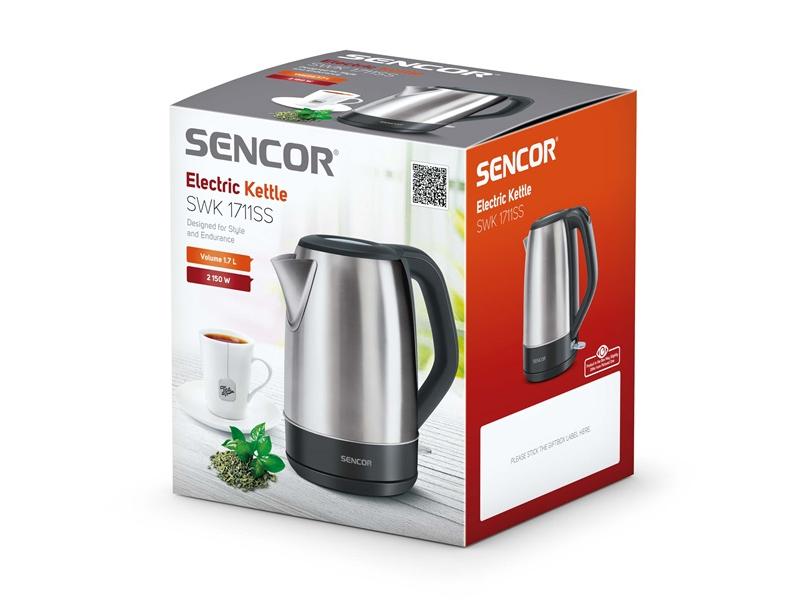 A Sencor SWK 1711SS egy nagy teljesítményű nemesacélból készült elektromos vízforraló 2150 watt maximális teljesítménnyel, mellyel időt és energiát takaríthat meg. Akár 1,7 liter vizet is képes egyszerre felforralni, így 3-5 fős háztartásokba megfelelő választás. A készülék használatát ergonomikusan kialakított fogantyú teszi kényelmesebbé, valamint a markolatba épített fedélnyitó gomb.