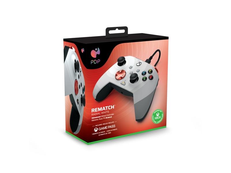 A PDP 049-023-RW Rematch Xbox Series X|S/Xbox One/PC 3,5 mm audio vezetékes fehér kontroller leírása: Csomag tartalma: Kontroller, USB kábel, 1 hónapos Xbox Game Pass Ultimate előfizetés