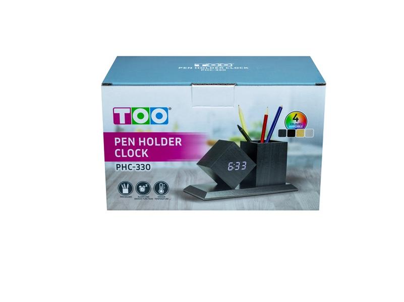 TOO PHC-330-B fekete digitális óra írószertartóval