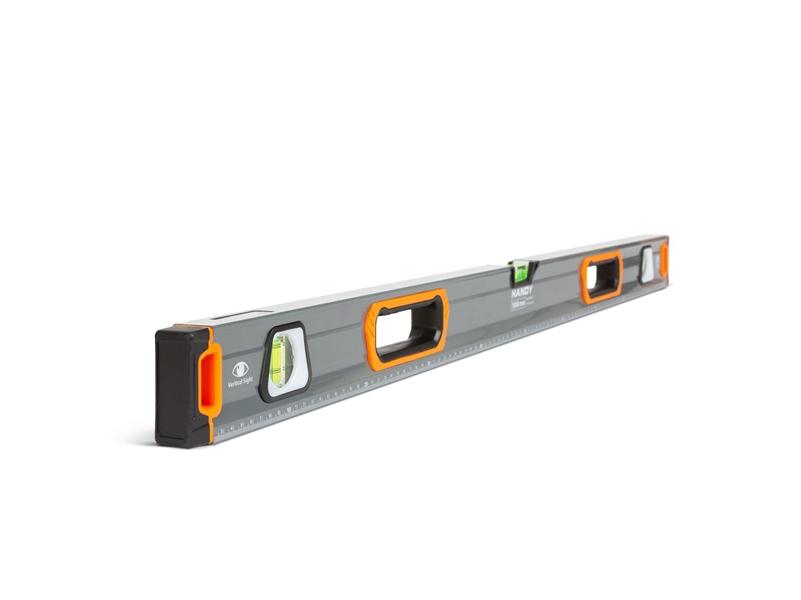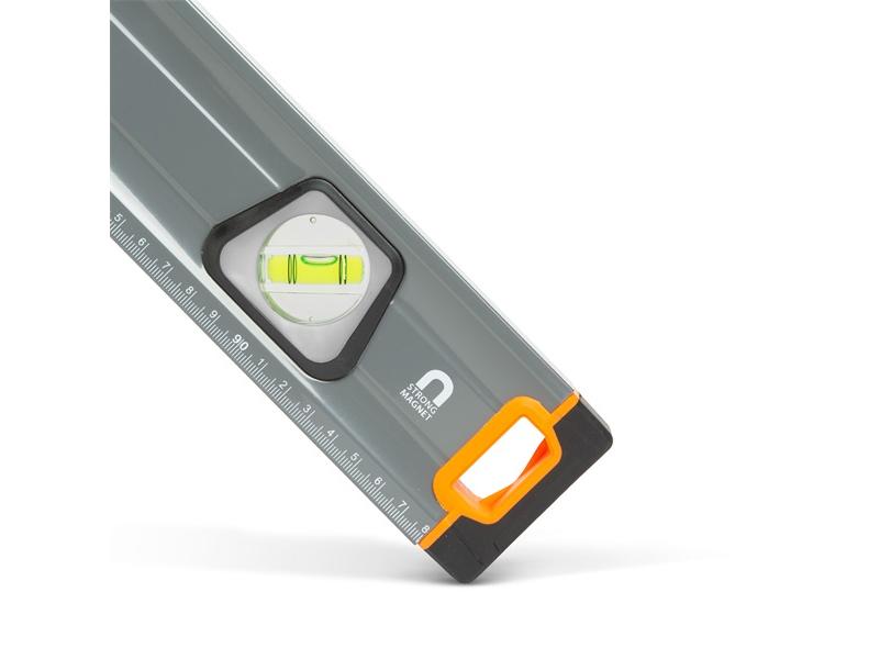 Professzionális vízmérték 3 db elektronikusan kalibrált libellával. Minőségi, nagy szilárdságú festett alumínium boxból készült, amelynek a végén stabil gumi végütköző található. Az eszköz teljes hosszában skálázott vonalzó, mérések során lehet hasznos. 2 db belső, gumírozott fogantyú segíti a stabil tartást bármilyen helyzetben. Az oldalélen található tükörrel ellátott betekintőablaknak köszönhetően szűk helyeken is leolvasható a függőleges libella. Ideális felhasználási terület lehet építkezéseken, felújításokon, segítségével biztosan nem lesznek többé ferde síkok, felületek.