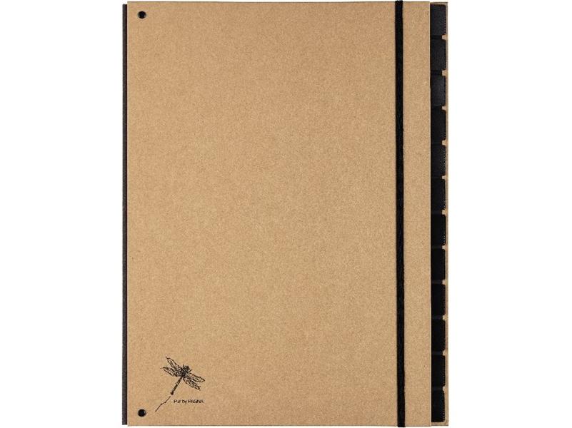 A Pagna Pur A4 7rekeszes natúr előrendező leírása: Természetes kialakítású, időtálló 7 részes előrendező, mely újrahasznosított kartonból készült, így ökológiai szempontból megfelelő választást kínál. A semleges fekete fülek segítségével az A4-es dokumentumok könnyedén iktathatók, vagy újra előkereshetők. A bővíthető gerincnek köszönhetően az asztali irattartó különösen nagy töltési kapacitással rendelkezik. A szakadásálló lapok érdes felületüknek köszönhetően megvédik a dokumentumokat a kicsúszástól. A mappa két fekete gumiszalaggal lezárható. A mappa a belsejében kémlelőlyukakkal ellátott.