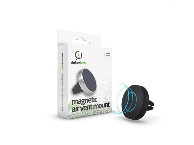 A Dreamtech 118755 univerzális szellőzőrácsba illeszthető fekete mágneses autós telefontartó leírása:
