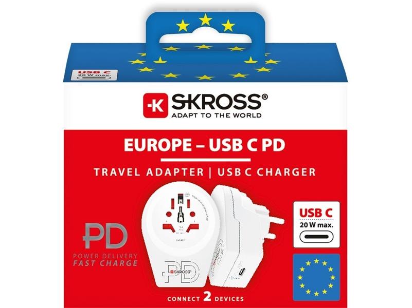SKROSS 1.500290 World to Europe C20PD - gyorstöltő csatlakozó átalakító európába utazóknak