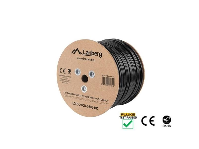 Lanberg LCF5-21CU-0305-BK 305m Cat5e F/UTP AWG24 Fca PE árnyékolt fekete kültéri kábel