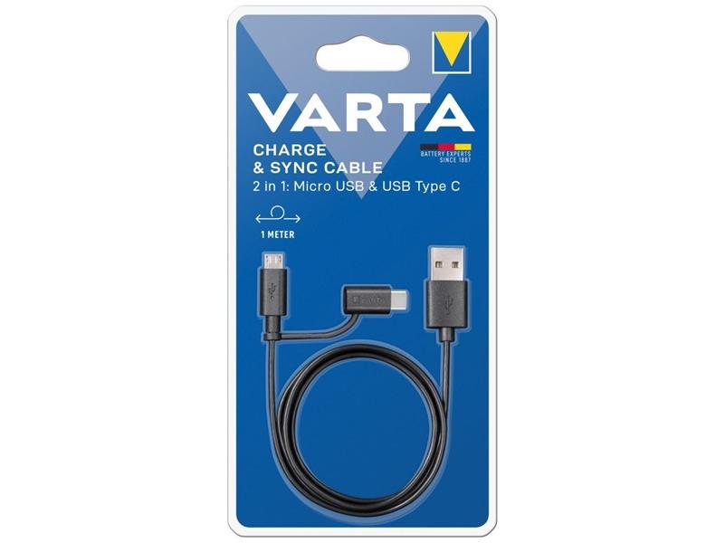 Varta 57948101401 1m 2in1 USB - microUSB/Type C fekete adat- és töltőkábel
