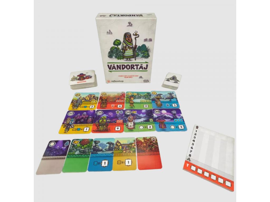 A Vándortáj egy izgalmas társasjáték, amelyben egy folyamatosan változó kontinens felfedezése vár rád és családodra. Kártyáról kártyára építhetitek ki az útvonalatokat, amit egyszer végigjártok, majd visszafelé is megtesztek, hogy a legtöbb pontot gyűjtsétek. A játék 8 fordulóból áll, és minden alkalommal új kihívásokkal és felfedezésekkel találkoztok. Utatok során különleges helyiekkel találkoztok, akik küldetésekre kérnek fel benneteket, és eldugott szentélyeket fedeztek fel, melyek bónuszokat és hírnevet biztosítanak számotokra.