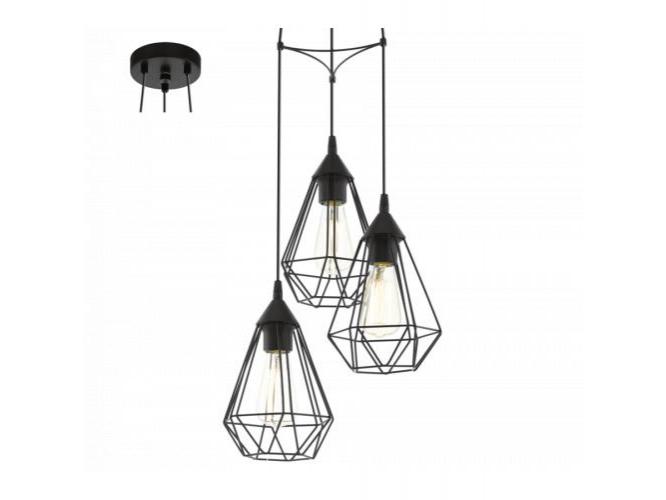 LED lámpa függeszték , mennyezeti , 3 x E27 , acél , fekete , EGLO , TARBES , 94191