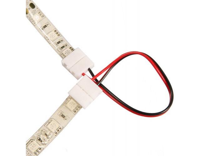A beltéri (5050-es típusú, 10 mm széles), egy színű, két eres LED szalagok sarkainak forrasztásmentes kialakításához. A forrasztásmentes csatlakozók csak vágási ponton használhatóak, forrasztási ponton (minden 0.5 és egész 1 méternél) nem.
