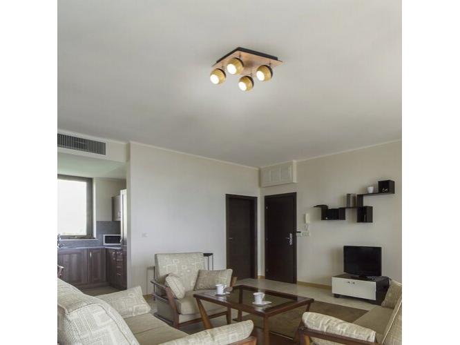 Az Arthur négyszeres spotlámpa fém készletű, és elsősorban azoknak ajánljuk, akik szeretnek a természetet idéző kiegészítőket otthonukban. A fekete és tölgy színű, ipari stílusú mennyezeti lámpa kerekded formáival vonzó darabja lesz nappalijának, hálószobájának vagy tágas előterének. A négy lámpaernyőt igény szerint beállíthatja, attól függően, hogy a szoba melyik részére szeretné a fényt fókuszálni. Ezt az Arthur modellt akár négy, legfeljebb 35 W-os fényforrással is használhatja, foglalat típusa: GU10. Ha kellemes, intim légkört szeretne, válassza a meleg fehér fényforrásokat. A lámpa négyszögletes talpának mérete 260x260 mm, a mennyezettől való távolsága pedig 135 mm. Az Arthur négyszeres spotlámpát fényforrás nélkül szállítjuk.