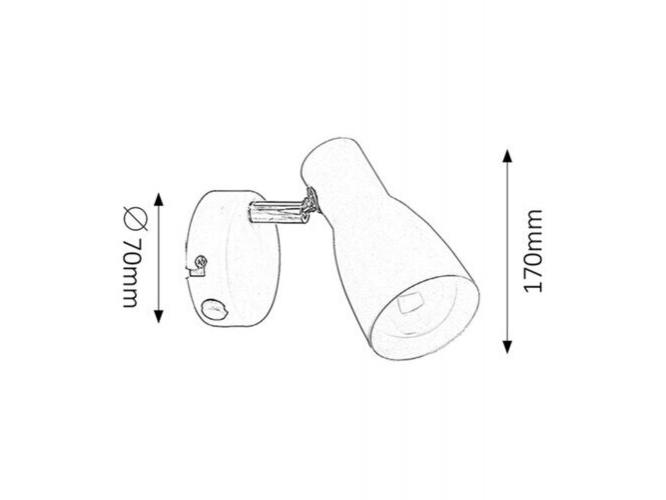 Egy oldalfalra szerelhető reflektor, mindig divatos stílusban, pozícionálható lámpaernyővel és beépített kapcsolóval. A 17 cm magas, fehér színű fém készítésű lámpatest, lámpaernyővel együtt. A lámpatest energiatakarékos kompakt és LED fényforrással is használható, legfeljebb 20W-ig, E27 foglalattal.