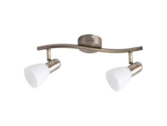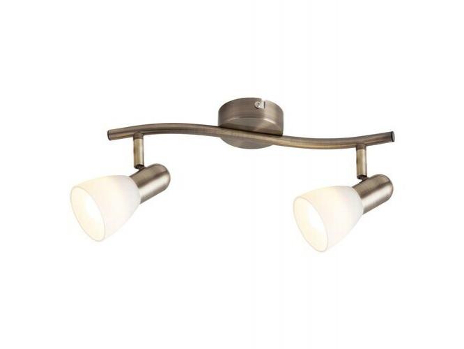 Egy mindig divatos stílusú reflektor 2 foglalattal. Egy 35 cm széles rézszínű fém szerkezet és állítható fehér üveg lámpabúrák, IP20 védelemmel. A lámpatestet 2 x halogén vagy energiatakarékos fényforrásokkal is üzemeltetheti, akár 40W-ig, E14 foglalatokkal.