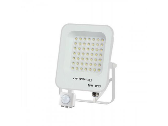 LED reflektor , 30 Watt , Ultra Slim , SMD , mozgásérzékelős , természetes fehér , fehér ház , IP65 , Optonica