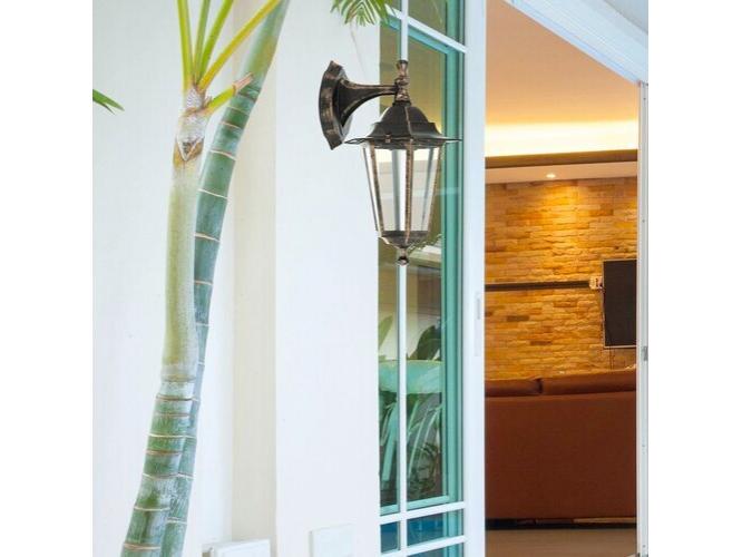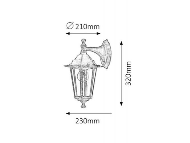 A modern stílusú kültéri fali lámpa UV-álló kialakítással és IP44 védettséggel rendelkezik a fröccsenő víz és a por ellen. Az 26,6 cm magas, 15,6 cm széles, rozsdamentes acél színű fémházból és műanyag lámpaernyőből összeszerelt lámpatestben E-27 foglalat található. Akár 11W-os energiatakarékos fényforrással is használható. A modellt hagyományos fényforrással nem lehet üzemeltetni!