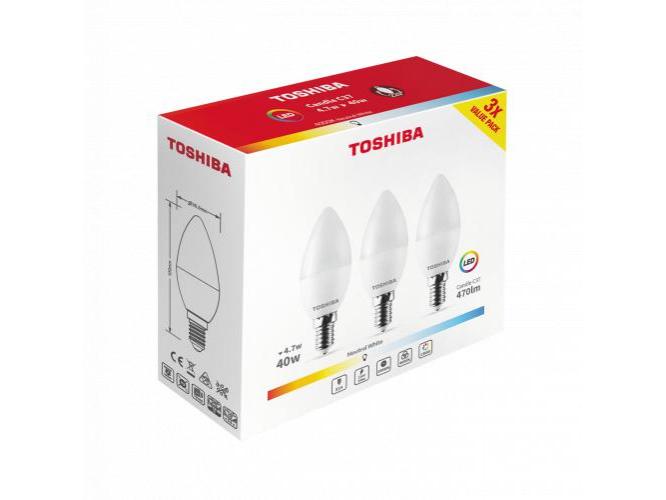 LED lámpa , égő , gyertya , E14 foglalat , 4.7 Watt , 180° , természetes fehér , 3 darabos csomag , TOSHIBA , 5 év garancia
