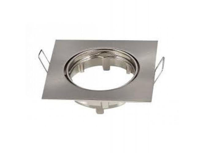 Matt nikkel színű, négyzet alakú süllyesztett lámpatest, öntött alumínium ötvözetből, billenthető kivitelben (15 fokos szögben állítható).