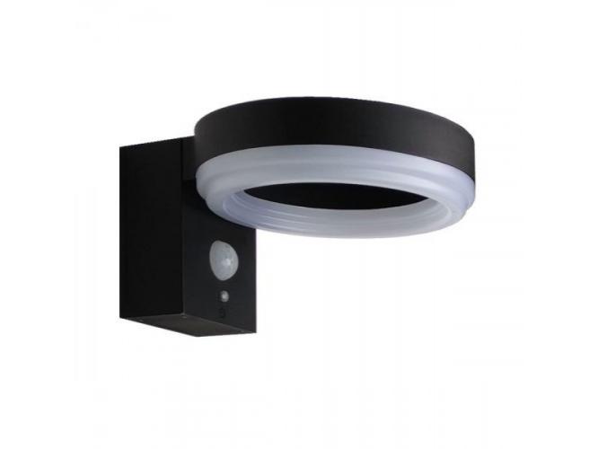 LED lámpatest , oldalfali , napelemes , mozgásérzékelővel , 6W , hideg fehér , fekete , kültéri , IP44