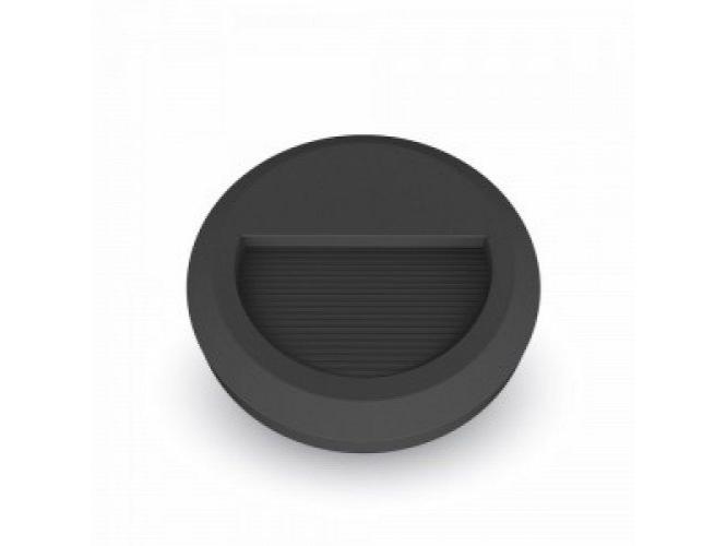 LED lámpatest , oldalfali , kültéri , lépcsővilágító , 2W , kerek , meleg fehér , fekete , IP65