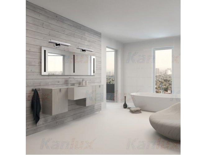 Tükör megvilágítására alkalmazható, króm színű LED lámpatest IP44-es védettséggel.