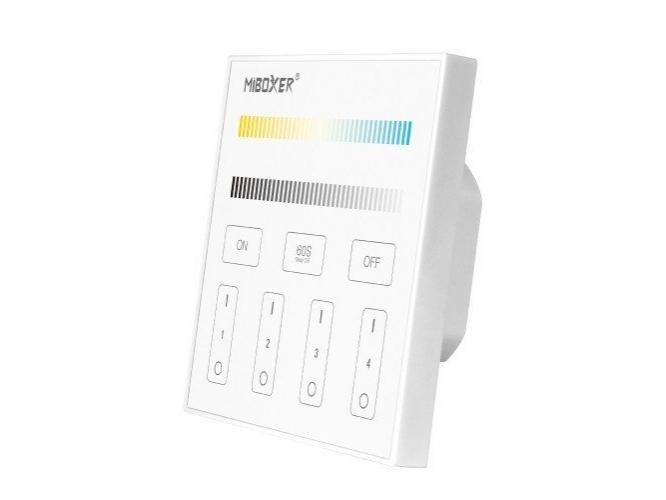 Vezeték nélküli , hálózati, fali , érintős , vezérlőpult, CCT fényforráshoz, 4 zónás , Miboxer (Mi-Light) , T2