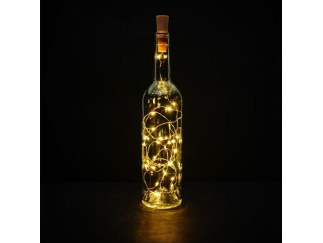 Led fényfüzér , beltéri , 20 db LED , meleg fehér , borosüveg dugó , elemes
