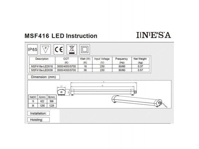 LED lámpatest , 18 Watt , 60 cm , kompakt armatúra , por- és páravédett , IP65 , ttermészetes fehér , INESA