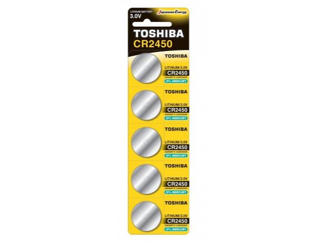 Gombelem CR2450 , lapos elem , 3 Volt , 5 darab , tartós , elem , higany mentes , TOSHIBA