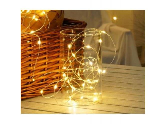 Led fényfüzér , beltéri , meleg fehér , rézszálás , elemes , 50 LED , 5 m , IP20 , Modee