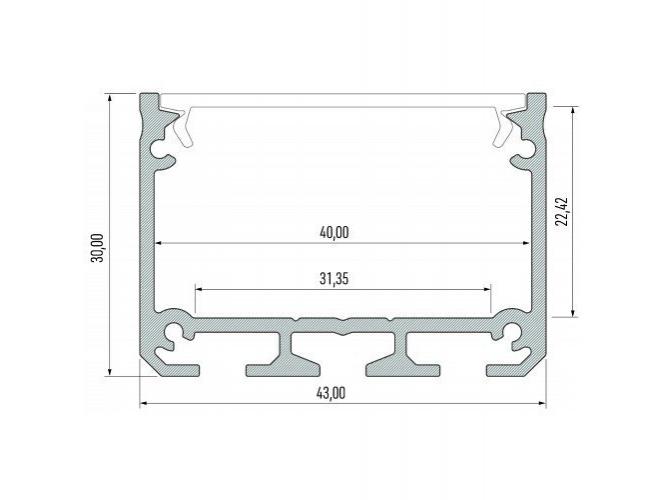 ILEDO típusú LED szalag profilunk 2 méteres kiszerelésben. (a fedő, a végzárók külön kaphatók!) A profil 31,35 mm széles, így akár 3 sor LED szalagot is beletehetünk.