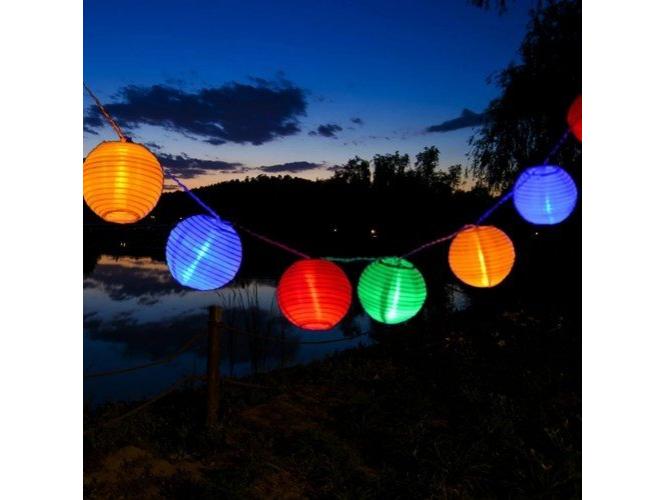 Led fényfüzér , kültéri , napelemes , színes lampion , 10 db , 3 m , IP44