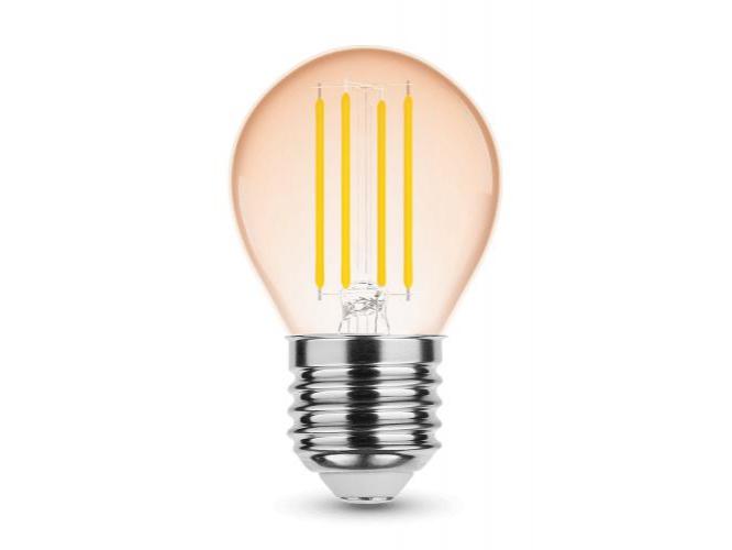 LED lámpa , égő , izzószálas hatás , filament , E27 foglalat , G45 , Edison , 4 Watt , meleg fehér , 1800K , borostyán sárga , M
