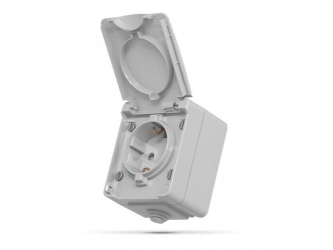 A Vízmentes földelt csatlakozó aljzat , falon kívüli , szürke , kültéri , IP65 , VIDEX , BINERA leírása: