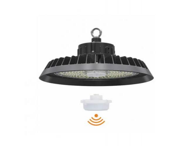 Csarnokvilágító LED lámpatest , UFO , 100 Watt , 150 lm/W , ipari világítás , dimmelhető , hideg fehér , 90° , mozgásérzékelő fo