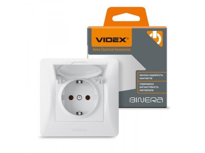 A Földelt csatlakozó aljzat , dugalj, csapófedéllel , süllyesztett , fehér , VIDEX , BINERA leírása: