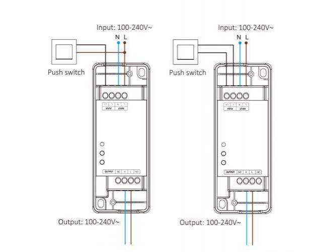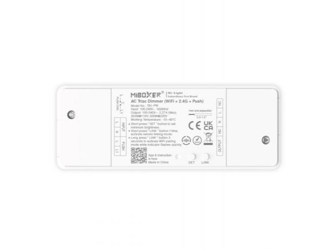 A TRI-PW egy kisméretű vezérlő (akár egy felületi kapcsoló mögé süllyeszthető), amely RF jelet fogad a Mi-Light távirányítóktól, és 230 V AC oldalon dimmel, a következő módozatokon: