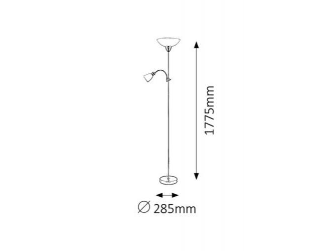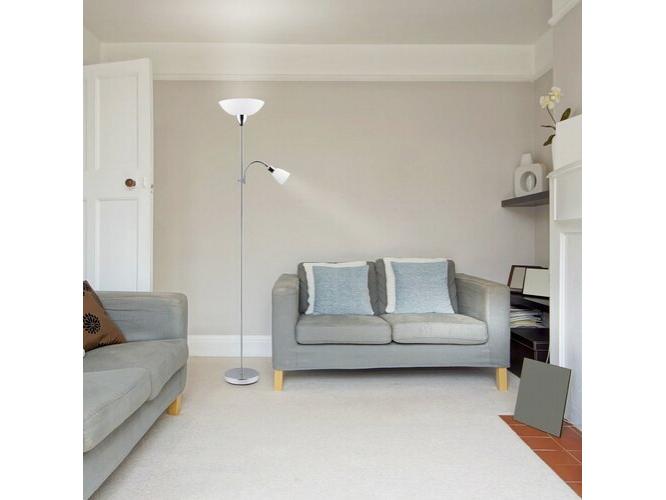 Egy 177,5 cm magas állólámpa mindig divatos stílusban, külön kapcsolható olvasólámpával, krómszínű, fém szerkezettel és fehér színű, műanyag lámpaburákkal. A lámpa felső világítótestét 60W-ig terjedő G45 halogén vagy LED fényforrással lehet használni, E27-es foglalattal, az olvasólámpa E14-es foglalatán pedig akár 40W teljesítményű, kompakt és energiatakarékos LED fényforrást lehet elhelyezni. A lámpa kialakítása köszönhetően a fényforrások gyorsan és egyszerűen cserélhetők, és a világítótest könnyen tisztítható.