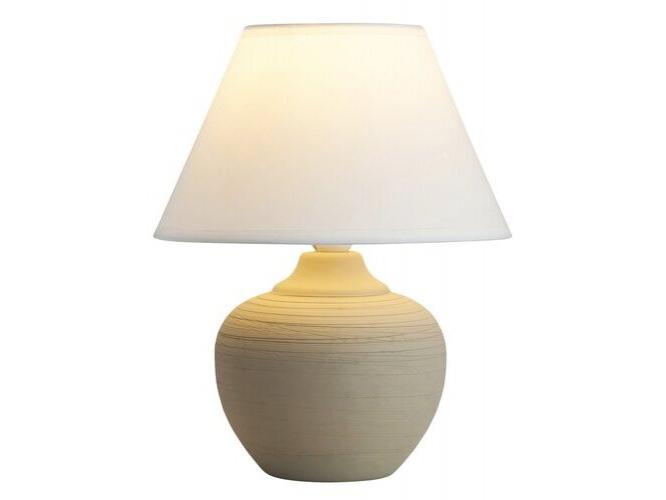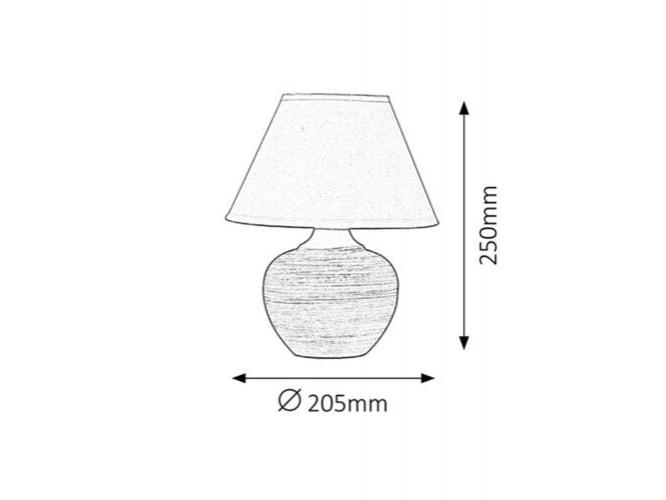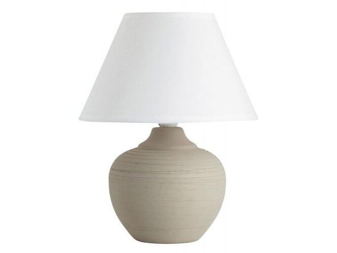Időtlen kinézetű éjjeli lámpa 1 foglalattal. 20,5 cm átmérőjű, 25 cm magas, bézs kerámia lámpatest és fehér textil lámpabúra. A lámpatest használható energiatakarékos fényforrással is, akár 40W teljesítményig, E14-es foglalattípussal.