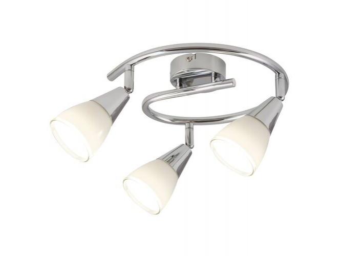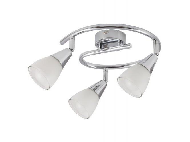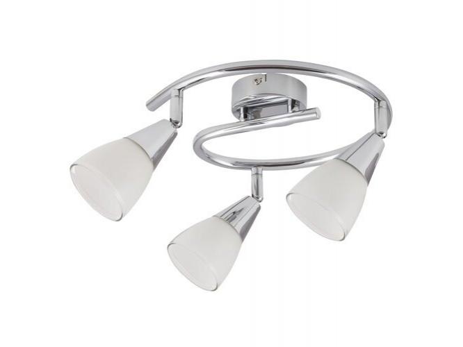 Egy modern stílusú mennyezeti spotlámpa 3 foglalattal. A lámpatest krómszínű, fém anyagból készült, 25,5 cm átmérőjű és fehér színű, pozícionálható üveg búrás lámpás, IP20 védelemmel. A lámpatestben 3 db energiatakarékos fényforrást is használhatunk akár 40W-ig, E14-es foglalatokkal.