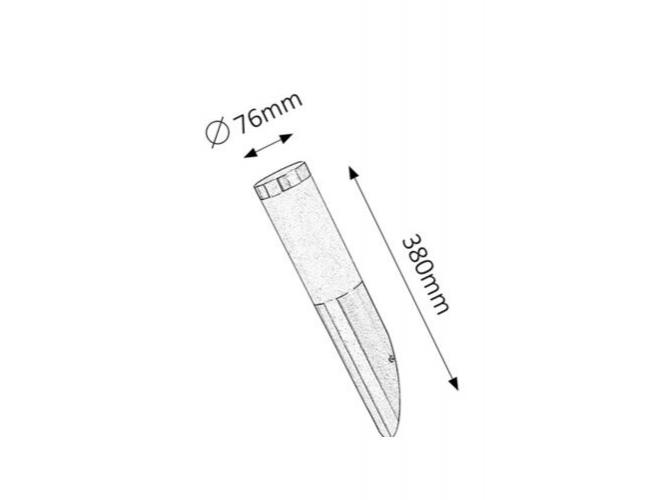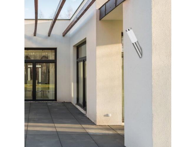Egy mindig divatos stílusban készült kültéri fali lámpa, UV-álló kialakítással. A 38 cm magas rozsdamentes acél színű fém lámpatest, melynek átmérője 7,6 cm, ferde alappal és fehér műanyag lámpabúrával rendelkezik, mely IP44 védelmet nyújt a fröccsenő víz és por ellen. A lámpatestben akár 25W-ig energiatakarékos fényforrást is lehet használni, E27 foglalattal.