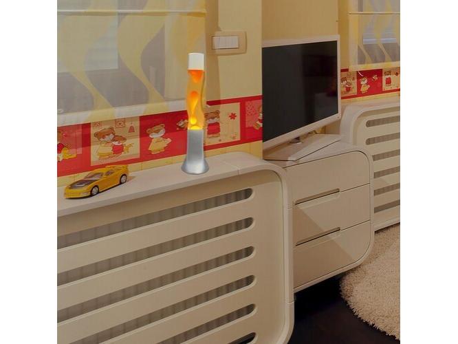 A narancsszínű hangulatos lámpa 1 darab 25W-os fényforrással van felszerelve (a csomag tartalmazza), tápkábellel és kapcsolóval. Ezüstszínű műanyagból készült lámpatest és üveg lámpabúra, 41,5 cm magas és 10,4 cm széles. A díszlámpa S35 hagyományos vagy halogén fényforrással használható, legfeljebb 25W teljesítménnyel, E14 foglalattal. A bemelegedési idő 3 óra.