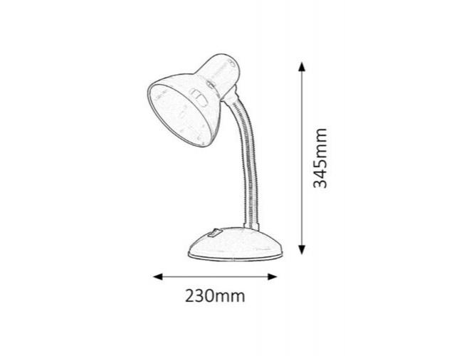 Egy mindig divatos stílusú asztali lámpa 1 foglalattal. Egy 23 cm széles, 34,5 cm magas, műanyagból készült fekete lámpa állítható lámpaernyővel. A lámpa akár 40W-os energiatakarékos fényforrással is használható, E27-es foglalattal.