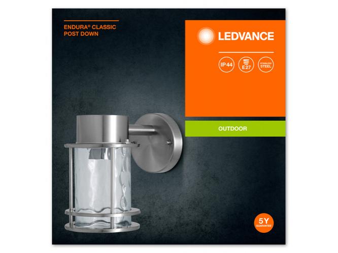 Rozsdamentes acél lámpatestek üveg diffúzorral. Termék jellemzők: Rozsdamentes acél ház. Tiszta, kalapácsolt üvegből készült diffúzor. Mozgásérzékelővel és anélkül is kapható. Falra szerelhető és bura lámpatestként is elérhető. Termék előnyei: A fényforrás választásának nagy rugalmassága az E27-es alapnak köszönhetően. Alkalmas intelligens alkalmazásokhoz, köszönhetően a LEDVANCE Smart + lámpákkal való kompatibilitásra. Könnyű és gyors telepítés. Alkalmazási területek: Kültéri használatra (IP44). Épülethalmazatok. Bejárati világítás. Teraszok, erkélyek. Ösvény világítás. Kocsifelhajtók. Felszerelés / Tartozékok: Teljes szerelési és csatlakozó kiegészítőkkel. Nincs fényforrás mellékelve.